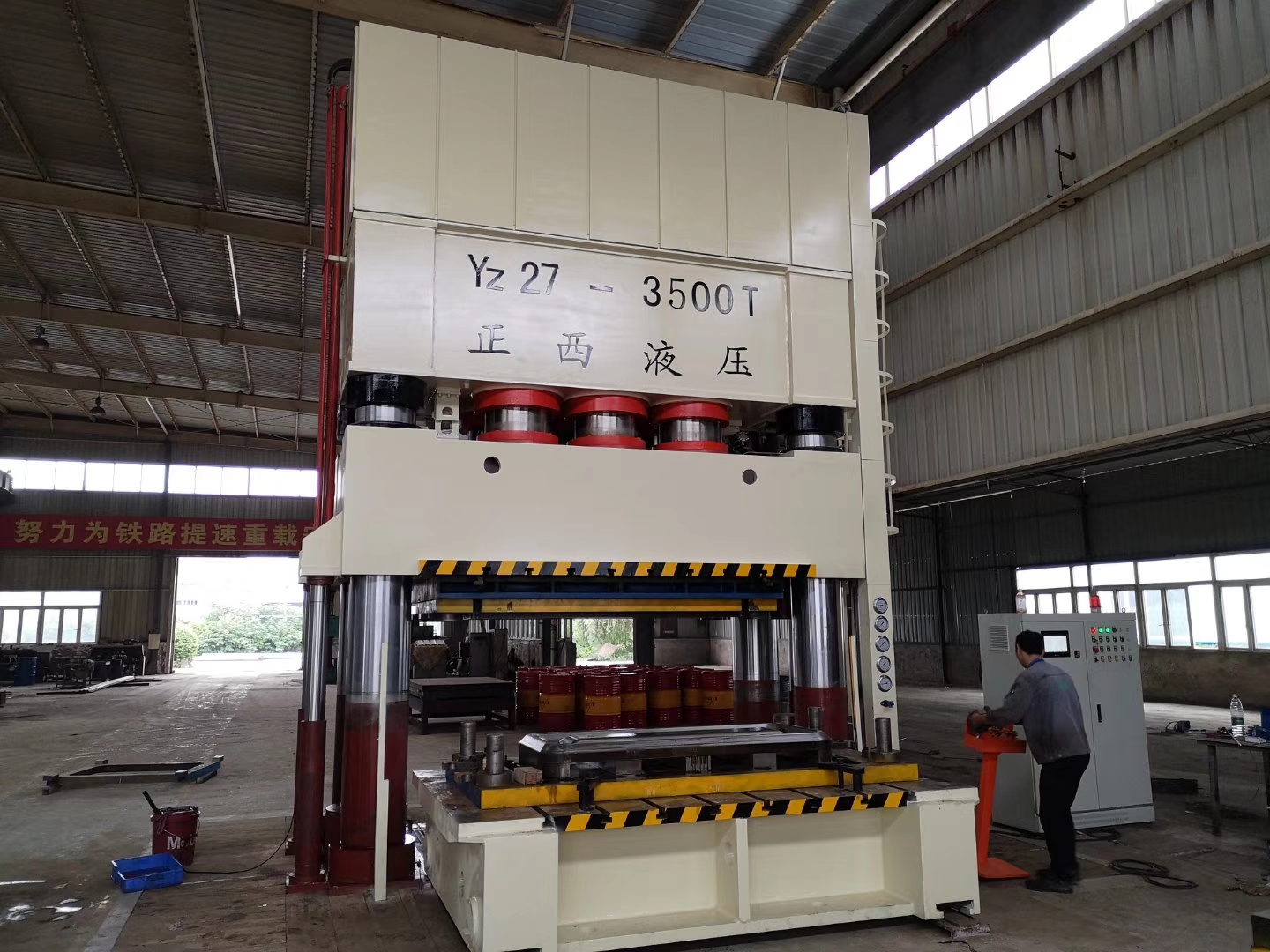廣漢客戶的在我司訂購的3500T四柱液壓機交貨啦,送至客戶工廠安裝調試。