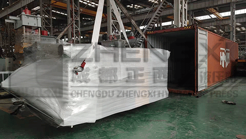 800噸四柱液壓機由埃及客戶訂制,訂制時間2.8個月,簽訂合同與生產設計,各個環節都非常快,埃及客戶對中國制造也非常認可,訂制800噸液壓機主要用于衛浴成型,客戶要求生產效率和壓機的速度上有非常高的要求,正西為了滿足客戶的需求,在加快工期的同時,一定在保證質量。以下是正發出的800液壓機正在裝箱。